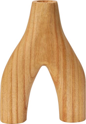 - A rustic and charming vase with an arched shape and a natural wood color that showcases the grain and texture of the material