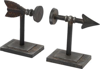Decorative Cast Metal Arrow Bookends, Bronze, Set of 2