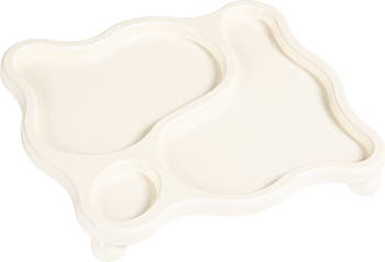 Decorative Footed Wood Tray with 3 Sections, White