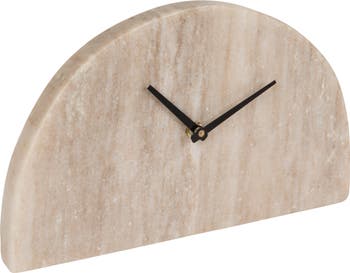- A timeless piece of elegance, this half circle marble mantel clock features a smooth beige surface