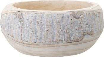 Decorative Hand-Carved Paulownia Wood Bowl, Whitewashed