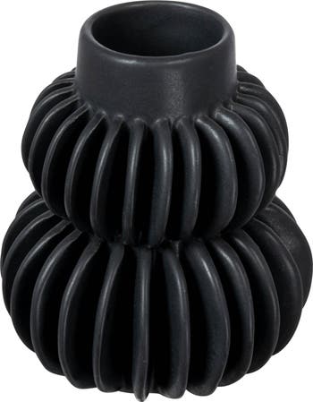 Decorative Pleated Stoneware Vase, Black