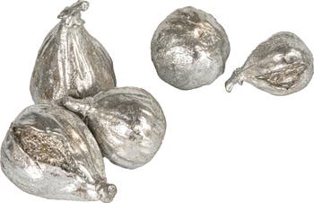 - A set of five exquisite resin figs, each boasting a lustrous silver finish that captures the eye