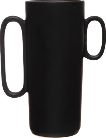- Adorn the living space with this gorgeous stoneware vase with asymmetrical handles