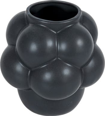 A modern and elegant vase to decorate any home, love this stoneware vase with raised dots, matte black. This vase is crafted from durable stoneware, which is durable, sturdy, and easy to clean. The vase has raised dots on the surface that create a textured and sophisticated look. The vase also has a matte black finish that adds some sleekness and style to the piece. The vase can hold water and fresh or artificial flowers, creating a striking contrast with the black color. The vase measures 8 inches in diameter and 8.25 inches in height. This vase is suitable for any minimalist, industrial, or style home décor. Place it on a shelf, a table, or a mantel, and enjoy its beauty and style. This stoneware vase with raised dots will make a great addition to the home or a perfect gift for someone special.
