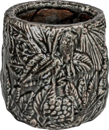 Add some charm and elegance to the space with this Decorative Terra-cotta Planter with Embossed Pattern, Grey. This beautiful planter is made of durable terra-cotta that has an embossed pattern that creates a textured and dimensional look. The grey color adds a touch of sophistication and versatility to the planter. It has a round shape and a drainage hole that can hold a 5-6 inch pot. Use it to display plants or flowers indoors or outdoors. It measures 7 inches in diameter and 6.75 inches in height, making it a perfect size for any table, shelf, or windowsill. Each planter is unique and will vary slightly in color and shape. Whether create a coastal, beach, garden, French country, or farmhouse vibe in the space, this planter will achieve it. It is not only functional but also decorative. It will make the space stand out and impress the guests.