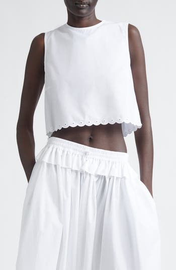 The Danish designer's reverence for romance springs forth in this crisp cotton-poplin crop top sweetened with dainty ties, scalloped trim and pretty eyelet blooms.