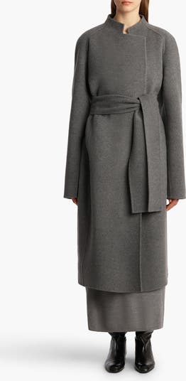 Luxuriously soft double-face wool creates enviable warmth and elegant drape for this notched-lapel coat given a waist-accentuating finish via a wide sash.