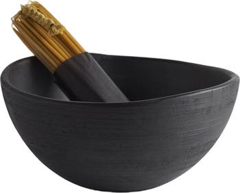 Serve your guests in style with this deep, curved bowl, handcrafted from mango wood and stained a dark color. Its ample proportions ensure that salads and other offerings remain plentiful throughout your party. When off-duty from serving, this substantial handmade container makes a special fruit bowl.