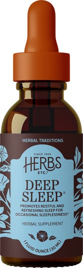Herbs etc. Herbal formula deep sleep contains extracts of fresh poppies, valerian root and other natural herbs to help promote a restful night's sleep. Apply 30 drops in a glass of water and take prior to bedtime. Achieve maximum results by the second or third night of application. Each 1 fl oz bottle is made with fast-acting organic ingredients that help you wake feeling refreshed the following morning.