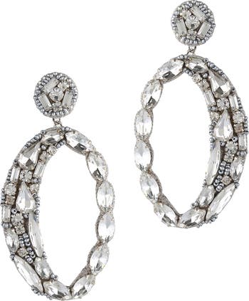 Gorgeous crystals and beads decorate a pair of hoop-shaped drop earrings that are sure to make a statement with any look.