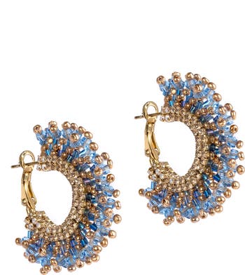 These richly decorated hoop earrings are perfect for any occasion with glass beads, faceted crystals and goldtone baubles shining brightly in any light.