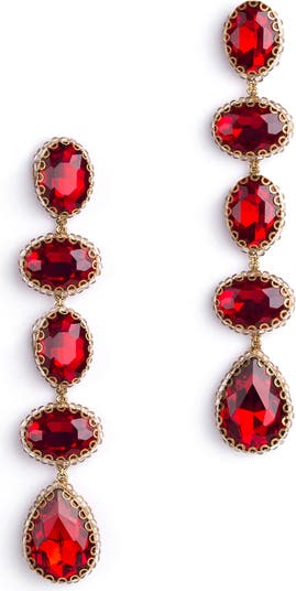 Put a glittering finish on your cocktail-party ensembles with these cascading drop earrings set with mixed-shape crystals rendered in a vivid hue.