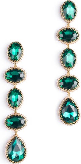 Put a glittering finish on your cocktail-party ensembles with these cascading drop earrings set with mixed-shape crystals rendered in a vivid hue.