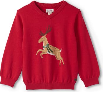 A leaping deer in a striped scarf brings colorful holiday cheer to a sweater knit from soft, breathable cotton to keep your little one comfy all season long. Roomy enough for easy on and off, it makes an adorable layer and washes in your machine whenever it needs a cleaning.