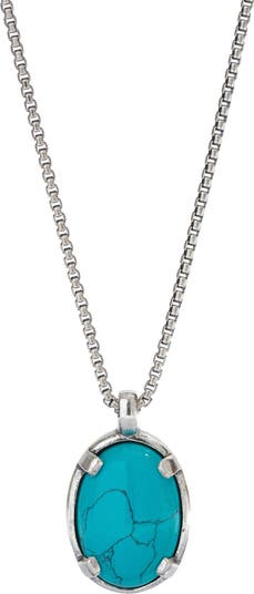 A bold turquoise inlay adds color to a charming Italian necklace fashioned from fine silver.
