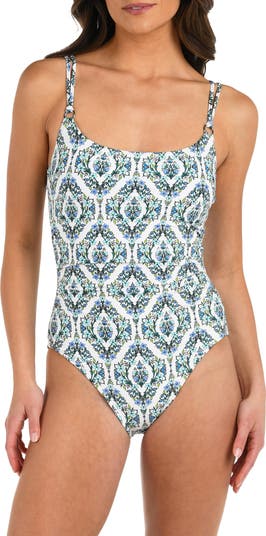 Lounge poolside in this sleek one-piece swimsuit enlivened by an eye-catching pattern and finished with fully adjustable straps.