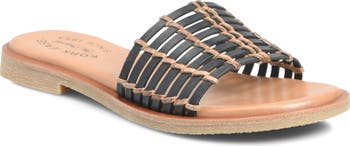 Woven straps add an extra dimension of vintage-chic style to this comfort-cushioned slide sandal.
