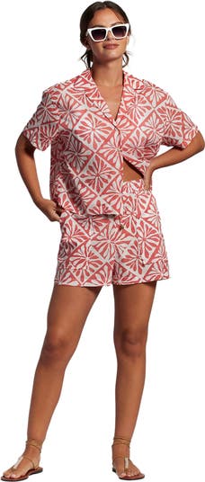 Déjà vu: the curious feeling that you've already been here, like a familiar pattern from a past life. You can't quite put your finger on it, but the pieces fit together seamlessly. Laid back, buttoned up. The Cassia Top is an effortless shirt with short sleeves and a convertible collar. It's made in lightweight, breathable cotton voile. 100% Cotton Voile Mother of pearl buttons at front placket Machine wash cold gentle cycle. Do not bleach. Line dry. Low iron.