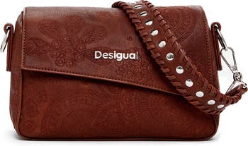 Floral and medallion embroidery lends free-spirited style to a faux-leather shoulder bag that's completed by a beautifully woven strap.