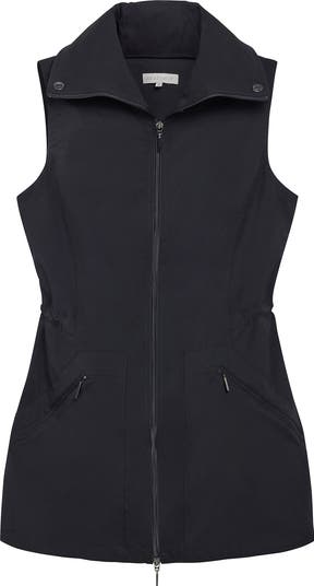 This sophisticated wear-everywhere vest in our signature curve-hugging stretch is a travel favorite. Designed in a flattering longer length, this chic layering piece is ideal for weathering chilly airports, transitioning between seasons or adding extra interest to your look. On breezy days, zip the collar into a funnel neck as extra protection against the elements. Front zip pockets are a secure way to stash essentials like your wallet, keys, and phone.