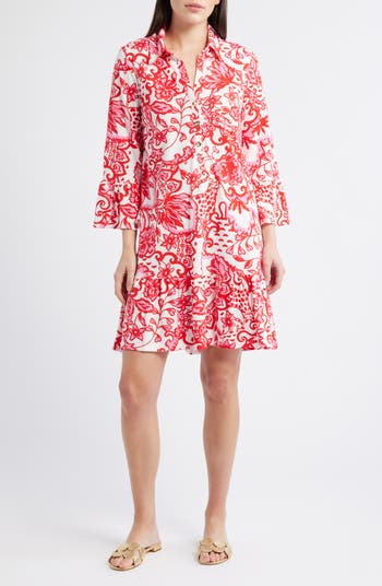 Keep things easy and breezy as you go through your day in this cotton shirtdress made with a convenient button-half placket and flowy long sleeves.