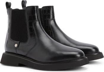 A durable yet lightweight rubber sole grounds your stride in a classic chelsea boot defined by back pull tabs and polished logo hardware.