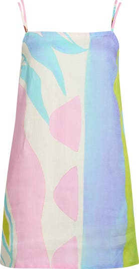 A shift silhouette and breathable linen further the breezy vibe of this printed minidress making it a perfect beachy cover-up option.