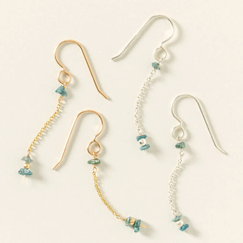 Prized for their rarity and beauty, blue diamonds are only found in a handful of mines, requiring specific geological conditions for their unique coloration. Britta Ambauen incorporates raw, ethically sourced, uncut versions into her elegant earrings, adding a delicate azure sparkle to your jewelry collection. Earrings measure 1.25”. Choose Sterling Silver or 14K Gold Fill. Handmade in Washington.