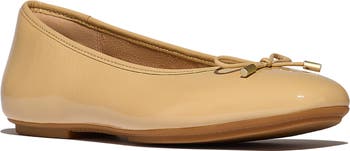 A classic silhouette that never goes out of style – especially when paired with cutting-edge comfort technology. FitFlop have used a glossy, subtly textured patent leather to create the classic cut of these Delicato ballerinas, finishing them off with the style's signature bow at the toe. But it's what's underneath that really sets these flats apart; smart Dynamicush™ technology delivers hidden pockets of high-rebound cushioning that give the appearance of a sleek, flat sole – while providing exceptional, all-day comfort. The anatomically contoured insole works with your body's natural alignment, ensuring these ballerinas feel as good as they look from the very first wear (and right to the last).
