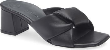 Wide, knotted straps add subtle dimension to a square-toe slide sandal lifted by a wrapped block heel for stylish and walkable height.