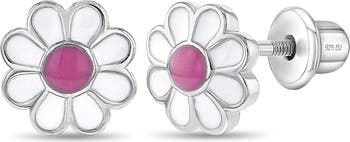 Beautifully hand-painted enamel daisy earrings for little girls. These girl's flower earrings are crafted in 925 sterling silver and painted using fun, vibrant colors. These hypoallergenic earrings are safe for sensitive ears and feature a threaded post and back to ensure the child's earrings stay safely and comfortably in place. These earrings include a complimentary gift box for easy giving!