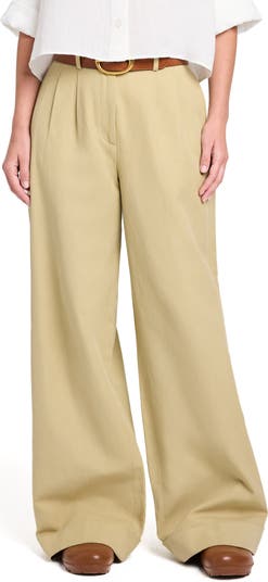 These pants are cut from refined cotton‑linen twill with a soft, structured hand and elegant drape. A mid‑rise waist and front pleats tailor the fit through the top, while a relaxed wide leg falls long and fluid for a lengthening line.