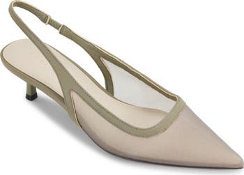 This sleek slingback brings airy ease with a lightweight mesh upper that keeps things cool while looking impeccably tailored. The pointed toe creates a long, elegant line, and the slim back strap keeps the fit secure.