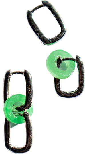 seree Della Convertible link small silver jade earrings, Alternate, color, Bright Green