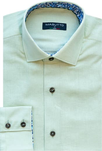 MASUTTO Della Linen Button-Up Shirt, Main, color, Green Beige Light