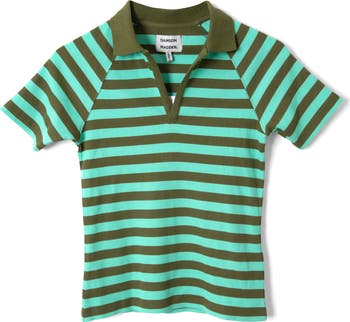 A shrunken silhouette adds sass to a sporty polo patterned in happy stripes.