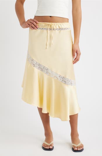 Delphia Lace Inset Asymmetric Satin Skirt