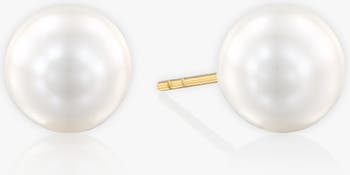 A pair of timeless 8mm round freshwater pearl earrings, showcasing the natural beauty of carefully selected AAA-grade pearls. Each pearl is chosen for its radiant luster, smooth surface, and perfectly round shape. Set by hand with meticulous attention to detail, these earrings embody refined elegance and classic sophistication