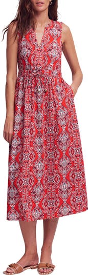 Cut from soft cotton jersey, this sleeveless midi dress is accented with a tie waist to cinch the silhouette.