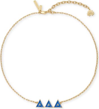 Lele Sadoughi is a proud partner of the National Panhellenic Conference. Crafted in collaboration with 12 of the NPC member organizations, each piece features official Greek letters, crests, colors and symbols. Our golden, dainty charm necklace is the perfect everyday piece.