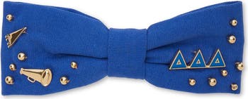 Lele Sadoughi is a proud partner of the National Panhellenic Conference. Crafted in collaboration with 12 of the NPC member organizations, each piece features official Greek letters, crests, colors and symbols. The Riley Bow - perfectly curved to hug your up-do or ponytail for a sporty, chic look.