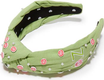 Lele Sadoughi is a proud partner of the National Panhellenic Conference. Crafted in collaboration with 12 of the NPC member organizations, each piece features official Greek letters, crests, colors and symbols. The Classic Knotted - our best-selling silhouette made with official Delta Zeta symbols and Greek letters.