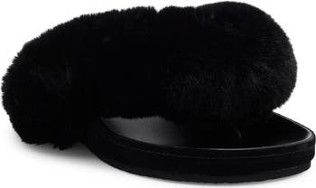 The classic flip-flop gets a glam makeover with this statement-making version topped with ultraplush faux-fur straps.