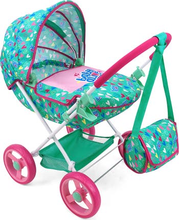 - PUSH YOUR DOLL IN STYLE: The pram is designed for dolls up to 18" (46cm). The bright pram has a lovely green, pink & hearts design that your little one is sure to love! The fabric is made of durable polyester which can be easily hand washed.