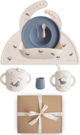 A giftable set that includes mealtime favorites made of high-quality food grade silicone encourages babies and toddlers to explore independent eating.