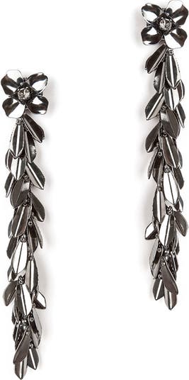 Sculpted leaves and dainty beads drift down from crystal-embellished flowers on handcrafted linear earrings that offer striking shine with every step.