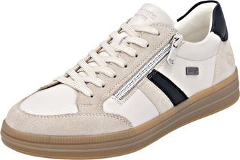 Smooth suede overlays refine the look of this low-top sneaker with a water-resistant membrane for added utility.