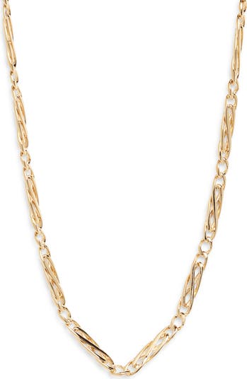 Artfully textured links bring modern dimension to this layerable Figaro-chain necklace plated in warm 14-karat gold.