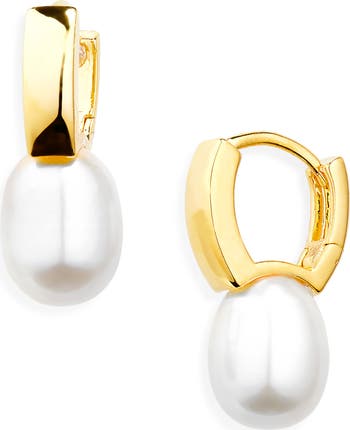Lustrous freshwater pearls bring a milky glow to these elegant huggie hoops featuring a sculptural design plated in sterling silver or 14-karat gold.